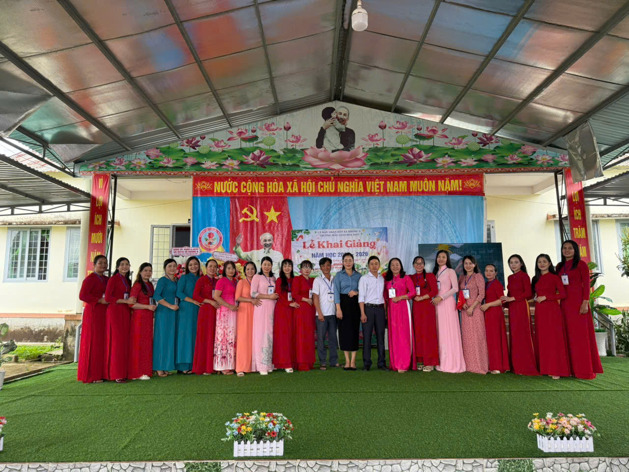Đến tham dự buổi lễ có sự hiện diện của các vị đại biểu chính quyền địa phương: Bà Nguyễn Thị Mai – Phó trưởng phòng Văn hoá Xã hội xã Krông Á, Ông Trần Văn Hồng – Phó Chánh văn phòng Đảng uỷ xã Krông Á. Về phía nhà trường có: Cô Nguyễn Thị Thuý Nhung – Bí thư chi bộ, Hiệu trưởng; Cô Đỗ Thị Thu Hiền – Phó Hiệu trưởng, cùng tập thể cán bộ, giáo viên, nhân viên, đại diện cha mẹ học sinh 8 lớp và toàn thể các cháu học sinh thân yêu.