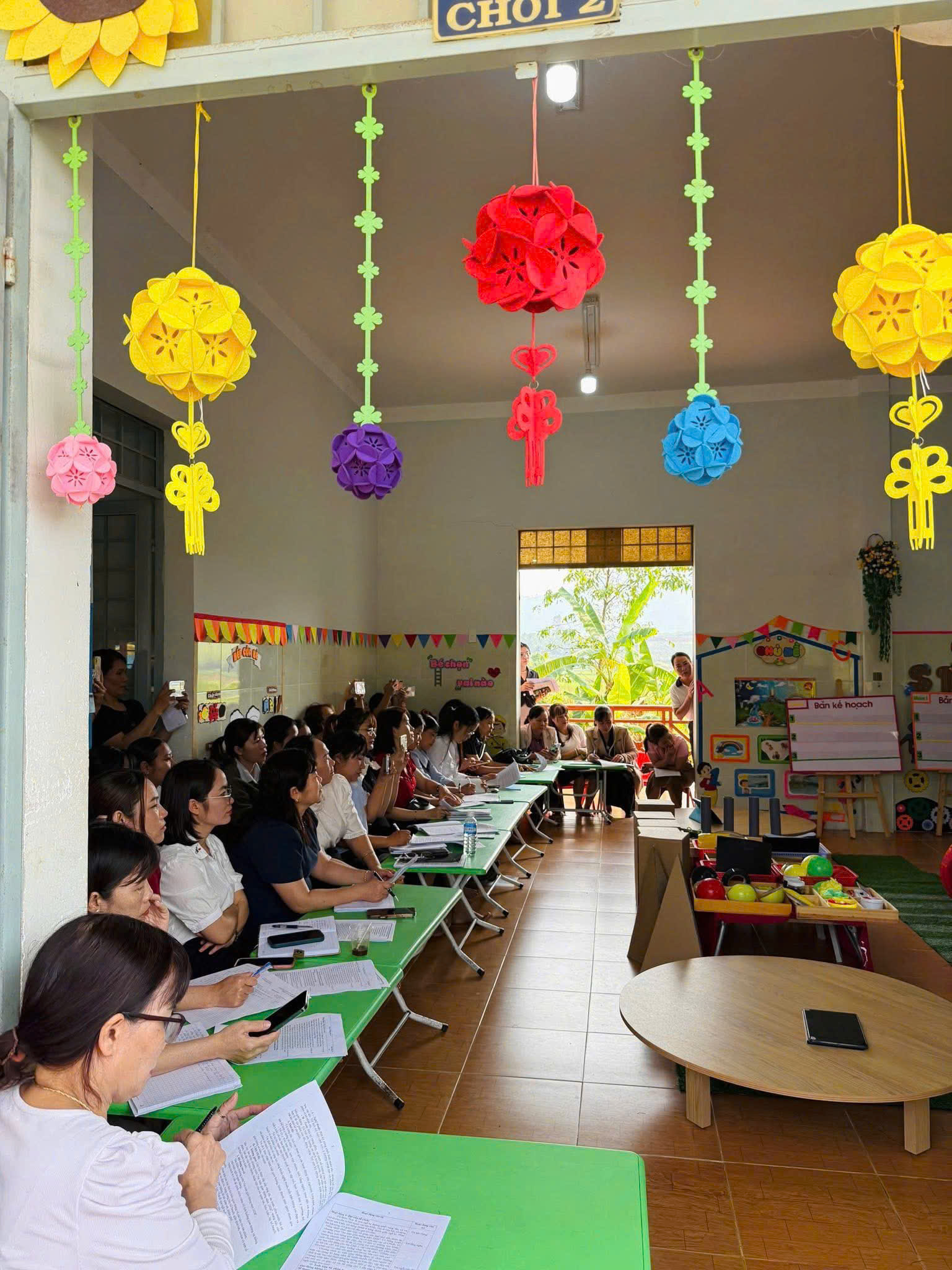 Đồng chí Nguyễn Thị Mai – Phó phòng Văn hoá xã Krông Á ghi nhận, đánh giá cao tinh thần làm việc của tập thể nhà trường, đồng thời nhấn mạnh chuyên đề không chỉ nâng cao chất lượng chuyên môn mà còn góp phần tăng cường sự kết nối giữa nhà trường và địa phương, giúp chính quyền hiểu rõ hơn về vai trò, ý nghĩa và sự đổi mới trong giáo dục mầm non hiện nay.