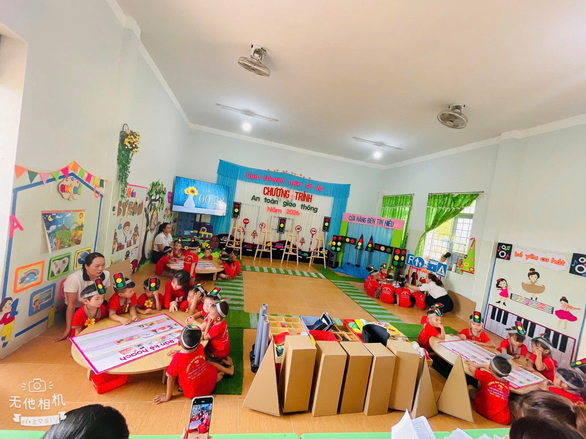 Trong khuôn khổ chuyên đề, hoạt động giáo dục STEAM với đề tài “Làm đèn tín hiệu giao thông” dành cho trẻ 4–5 tuổi do cô giáo Hồ Thị Hồng Loan – giáo viên chủ nhiệm lớp Chồi 1 trực tiếp tổ chức đã diễn ra sôi nổi, hấp dẫn. Mặc dù là giáo viên trẻ, mới ra trường 3 năm, song cô đã thể hiện sự bình tĩnh, tự tin, tổ chức hoạt động chuyên nghiệp và đạt hiệu quả cao.